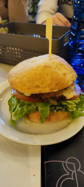 (Carne, Bacon, Queso de Cabra, Cebolla, Tomate, Lechuga, Huevo Frito y Salsa Rosa)